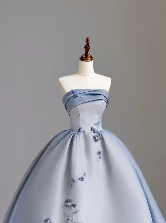 Elegant Glamour Ball Gown Strapless Blue Evening Gown Birthday Outfits Evening Dresses For Women DP1548