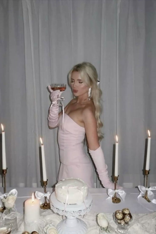 Cute Sheath Strapless Pink Satin Short Summer Birthday Dress Hoco Dress Birthday Outfit 19th Birthday Mini Dinner Dresses DP1117