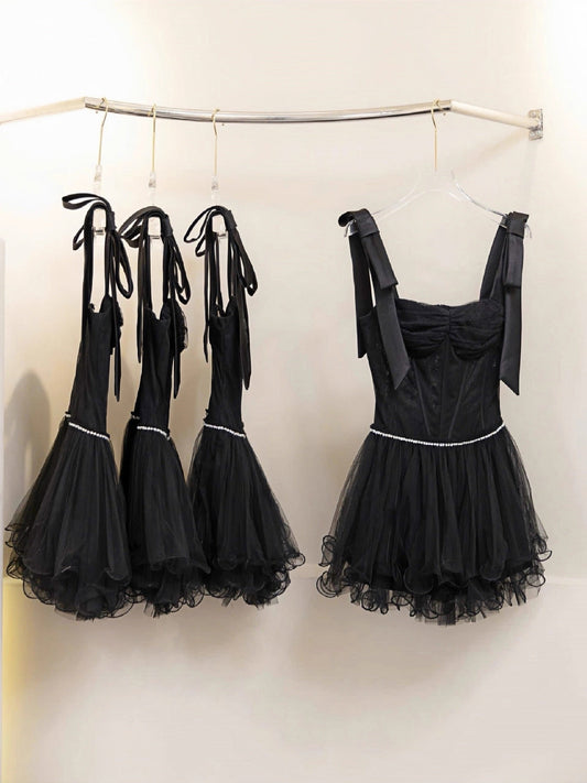 Cute A Line Straps Little Black Dress Party Dresses Short Formal Homecoming Dresses Night Chic Elegant Short Dresses Cocktail Dress 16th Birthday Outfits Tulle Hoco Dresses DH2770
