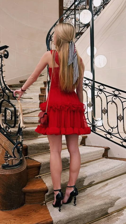 Cute A line Red Chiffon Mini Short Formal 8th Grade Homecoming Dresses Summer Middle School Hoco Dress Homecoming Outfits 25 Birthday Dress DH799
