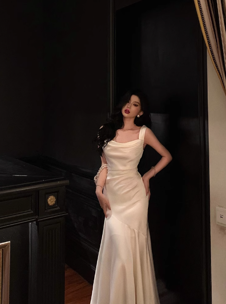 Classy Mermaid White Satin Long 18th Birthday Dress Party Gown 21st Birthday Outfits Birthday Dress Ideas For Women DP1294