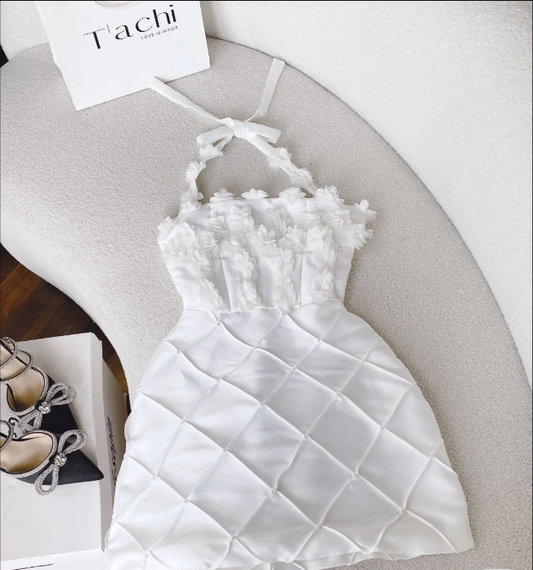 chic a-line satin halter short homecoming dress 18th birthday outfits P1950