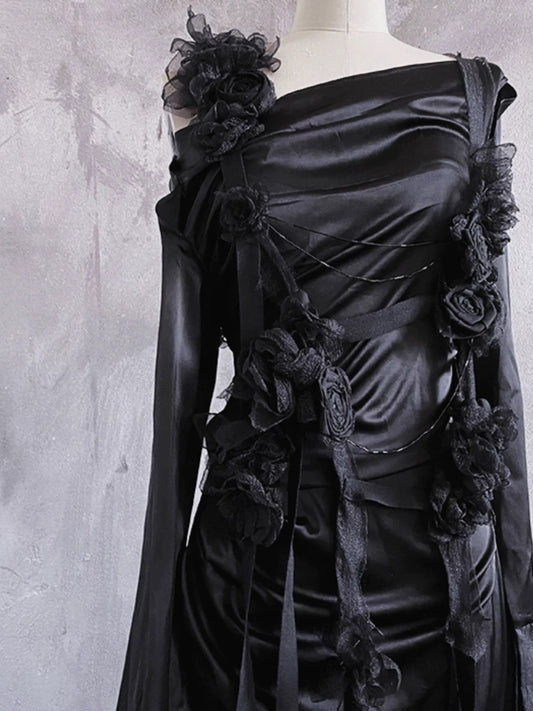 Chic A Line Spaghetti Straps Black Flower Ankle length Birthday Dresses Birthday Outfits SD514