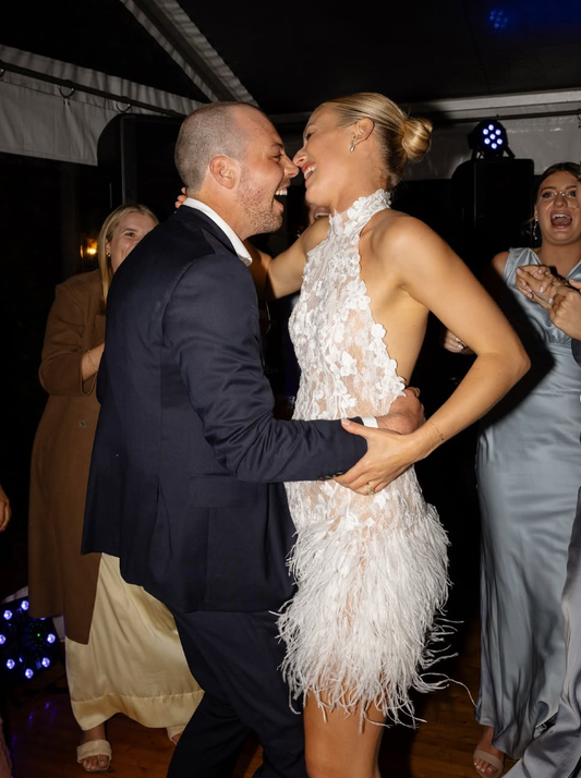Charming Sheath Halter Lace Feather Short Birthday Dress Wedding Dress SH2040