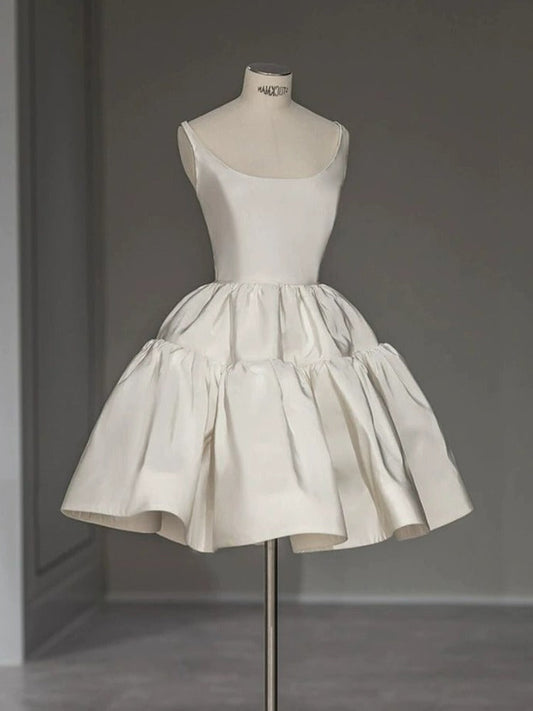 Chic Ball Gown Straps White Satin Homecoming Dresses Birthday Dress Birthday Outfits SD1191