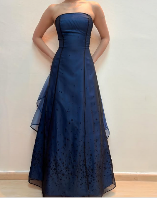 Blue Fashion Elegant Fairy Exquisite Stars Shiny Sequin Beading Spaghetti Straps Long Tulle Chiffon Satin Ball Gown Evening Dress Birthday Party Dress Prom Dress gh3761