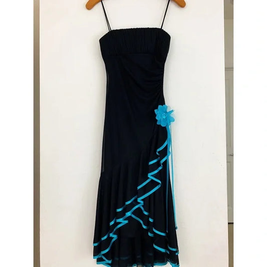 Black fashion blue floral tube top short ruffle homecoming dress prom dress evening dress birthday party dress gh3330