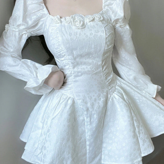 Ball Gown Square Neckline White Lace Holiday Dress Birthday Dresses Birthday Outfits SD1241