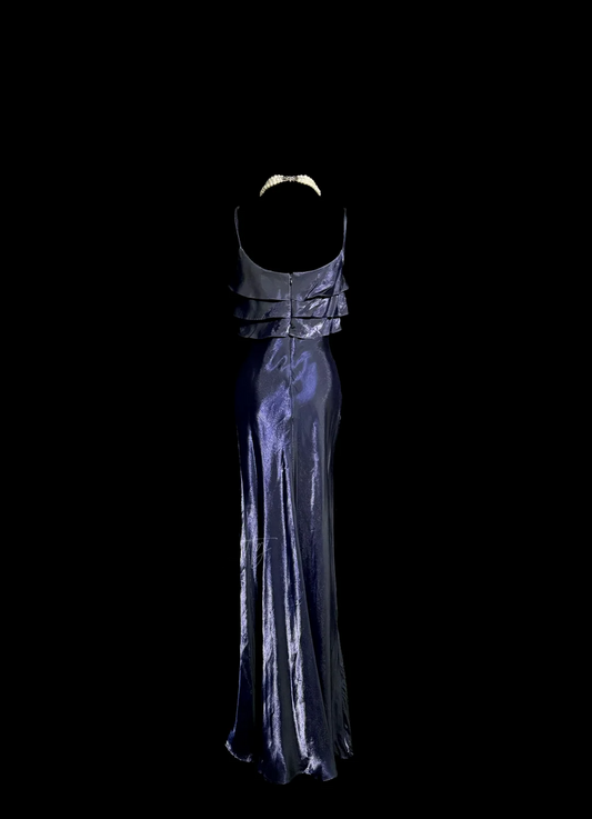 Vintage Mermaid Spaghetti Straps Navy Blue 1950s Retro Classy Satin Long Prom Dresses Party Dress 21st Birthday Outfits Graduation Dresses W869