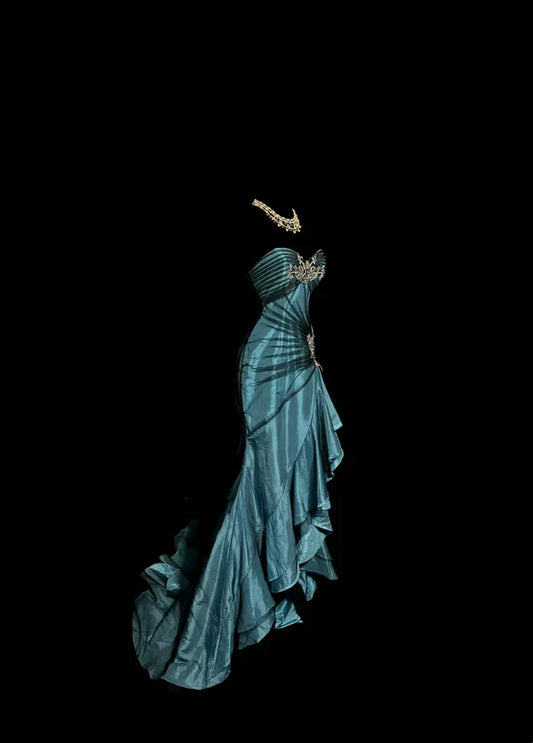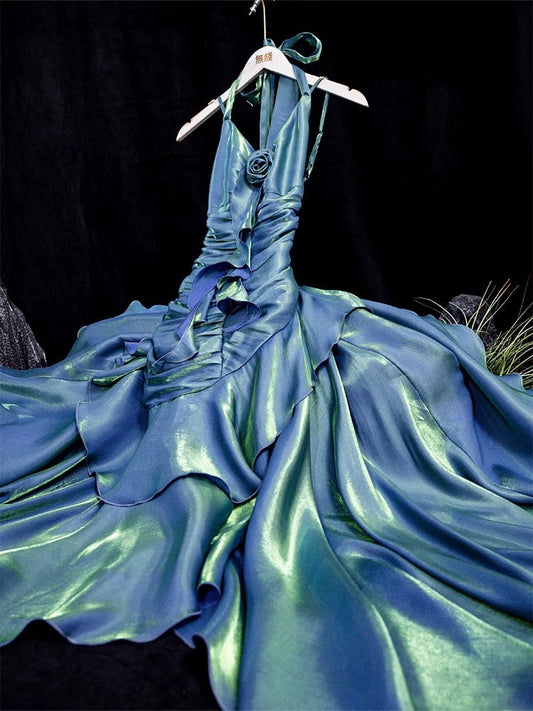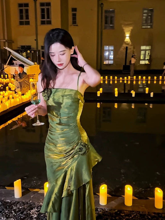 Vintage Mermaid Spaghetti Straps Green Long Party Dresses Birthday Outfits SD2948