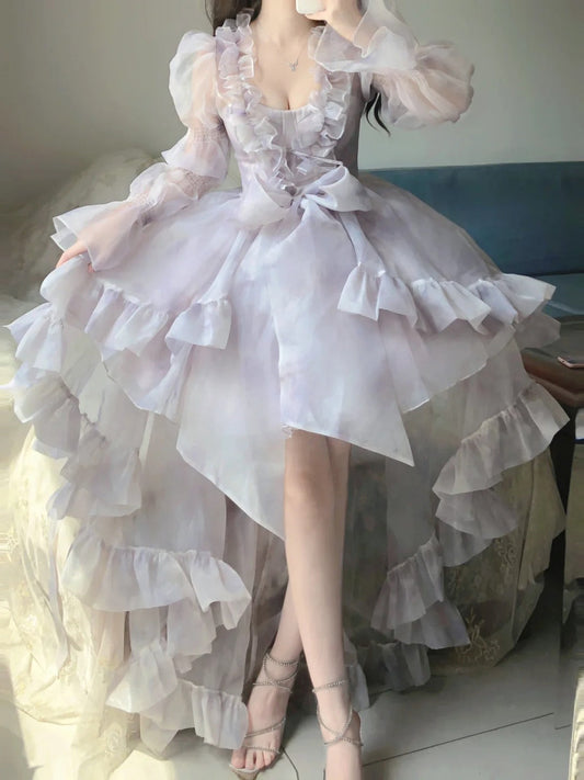 Vintage High Low Spaghetti Straps Ruffles Light Purple Prom Dresses Birthday Outfits SD470