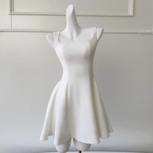 Trendy A line Square White Satin Sleeveless Formal Short 8th Grade Homecoming Dress Summer Middle School Hoco Dresses Cocktail Dress Birthday Outfits W919