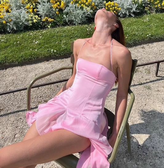 Sweet Ruffle Satin Backless Halter Neck 17th Birthday Homecoming Dress P3609