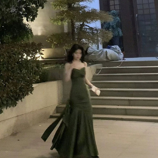 Simple Sheath Spaghetti Straps Floor Length Olive Green Long Party Dresses Birthday Outfits SD433