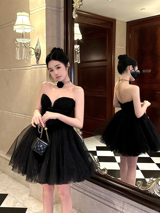 Simple Black A Line Sweetheart Neck Tulle Short Birthday Dress Homecoming Dress SH3402