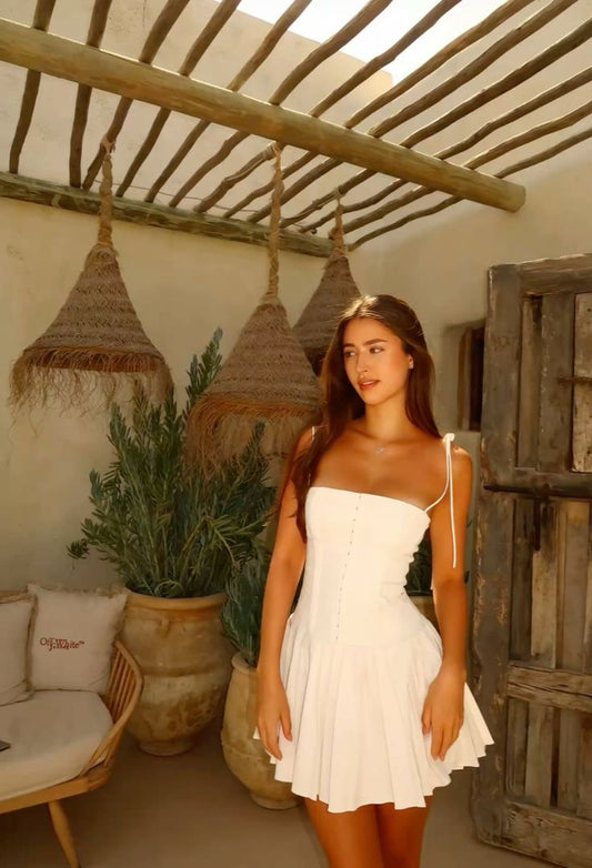 Simple A Line Spaghetti Straps Chiffon White Ruffles Short Summer Birthday Dress Hoco Dress Birthday Outfit 18th Birthday Mini Party Dresses DP1242