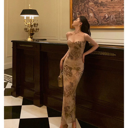 Sexy Sheath Spaghetti Straps Oil Painting Long Prom Dresses Birthday Outfits SD617