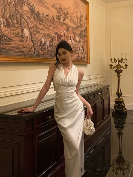 Sexy Sheath Halter White 18th Birthday Dress Long Party Birthday Outfits For Women DP0157