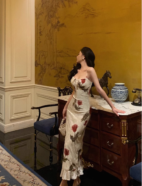 Sexy Sheath Spaghetti Straps Floral Prom Dresses Birthday Outfits Evening Gown SD983