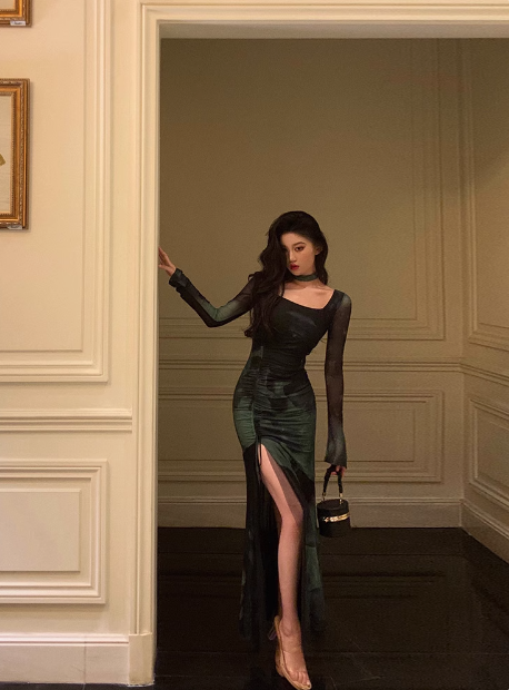Sexy Sheath Long Sleeves Green 21st Birthday Dress Party Gown Birthday Outfits Birthday Dress Ideas For Women DP1899