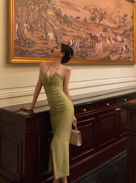 Sexy Sheath Halter Green Sleeveless 21st Birthday Dress Party Gown Birthday Outfits For Women DP550