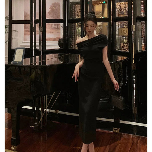 Sexy Sheath Off The Shoulder Black Ankle Length Prom Dresses Birthday Outfits SD600
