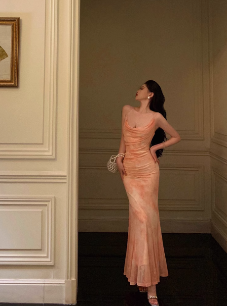Sexy Mermaid Spaghetti Straps Pink Floral 21st Birthday Dress Holiday Party Birthday Outfits For Women DP0180