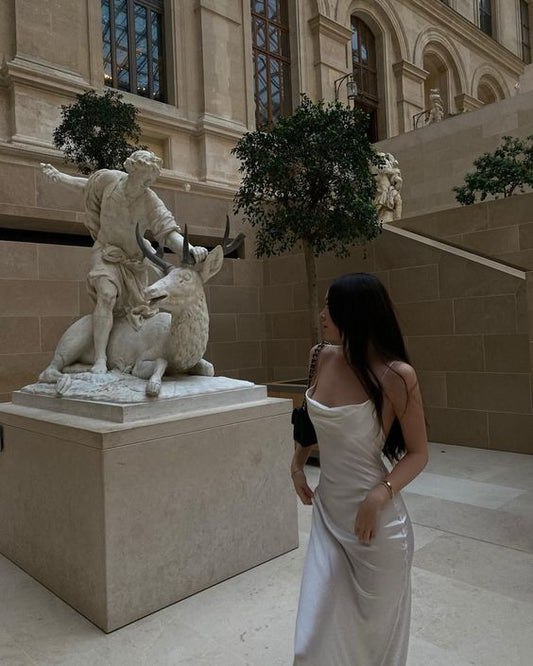 Sexy Mermaid Spaghetti Straps White Silk Satin Long Prom Dresses Birthday Outfits SD305