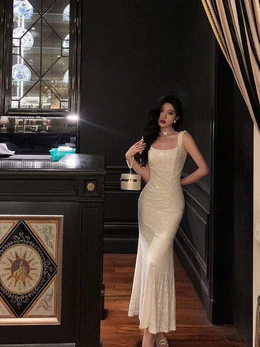 Sexy Mermaid Straps White Sleeveless Date Night Dress Prom Dresses Birthday Outfits SD629