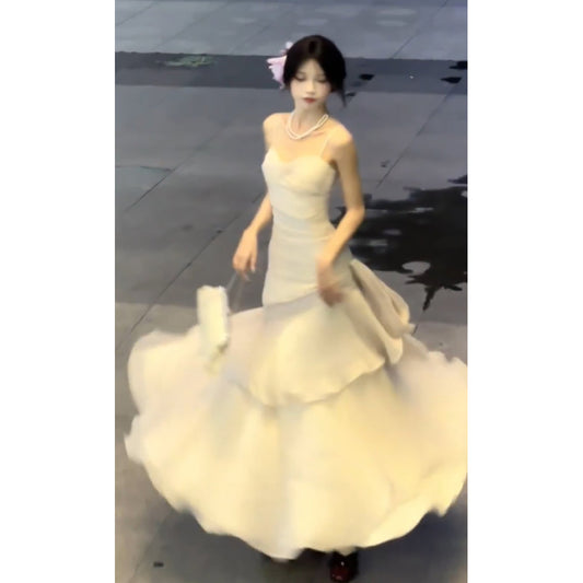 Sexy Mermaid Spaghetti Straps Ivory Long Prom Dresses Night Dress Birthday Outfits SD1174