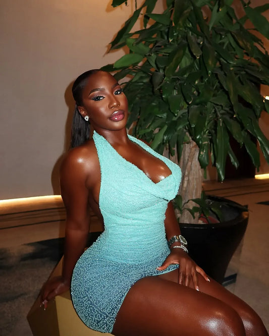 Sexy Halterneck Sleeveless Beaded Slim Fit Hip 22nd Birthday Homecoming Dress P3632