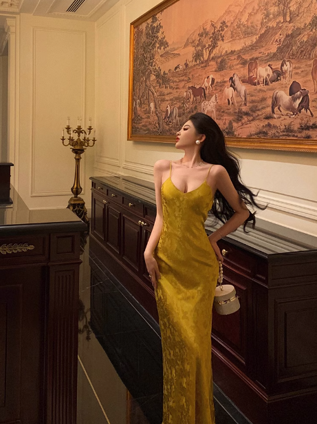 Pretty Mermaid Spaghetti Straps Yellow Satin 18th Birthday Dress Party Birthday Outfits For Womens DP0169