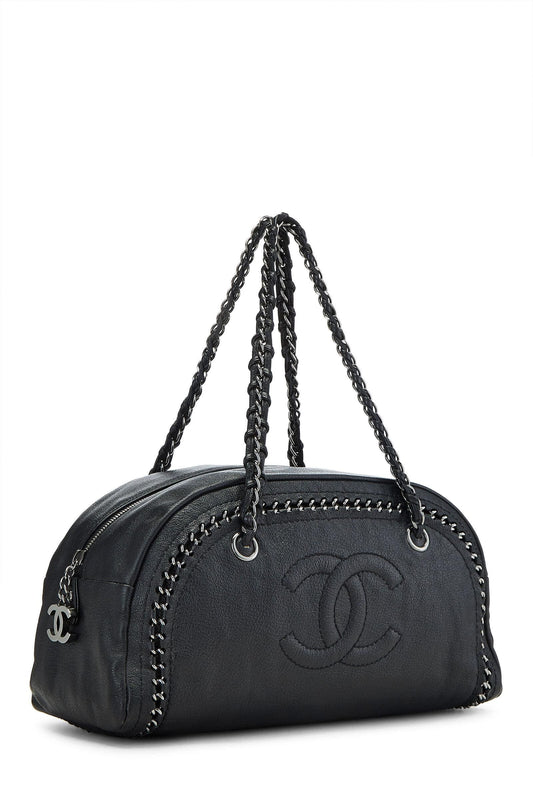 Chanel Black Bowling Bag Ligne Leather Lambskin Medium Satchel