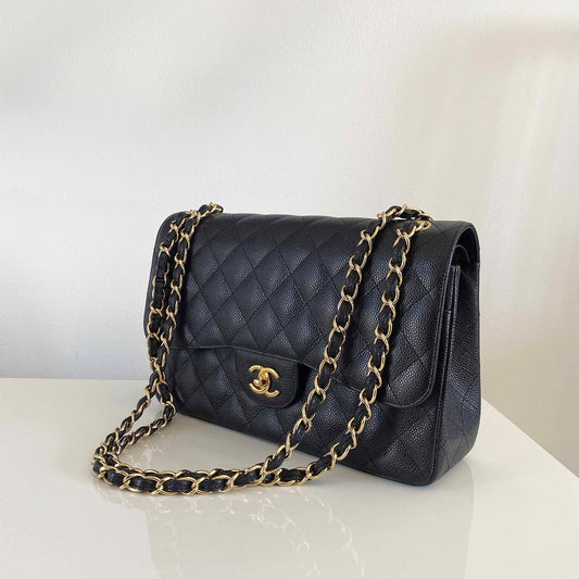 Chanel Black Jumbo Caviar Double Flap Classic Bag