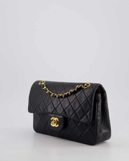 Chanel Vintage Black Small Classic Double Flap Bag in Lambskin Leather with 24k Gold Hardware