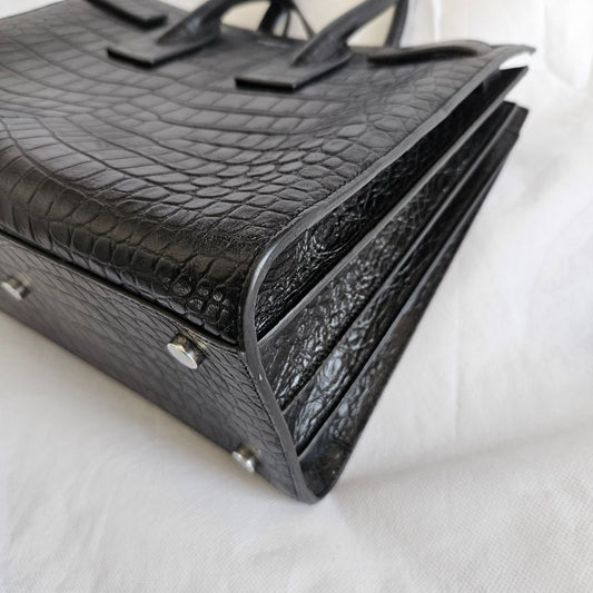 Saint Laurent Sac de Jour Tote Black Croc Embossed Bag