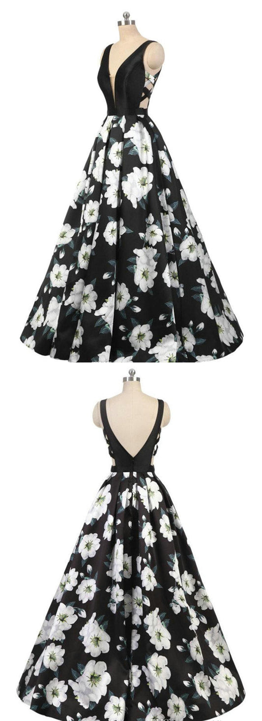 Black Floral Print Sleeveless Floor Length Ball Gown Long Prom Dress cg1806