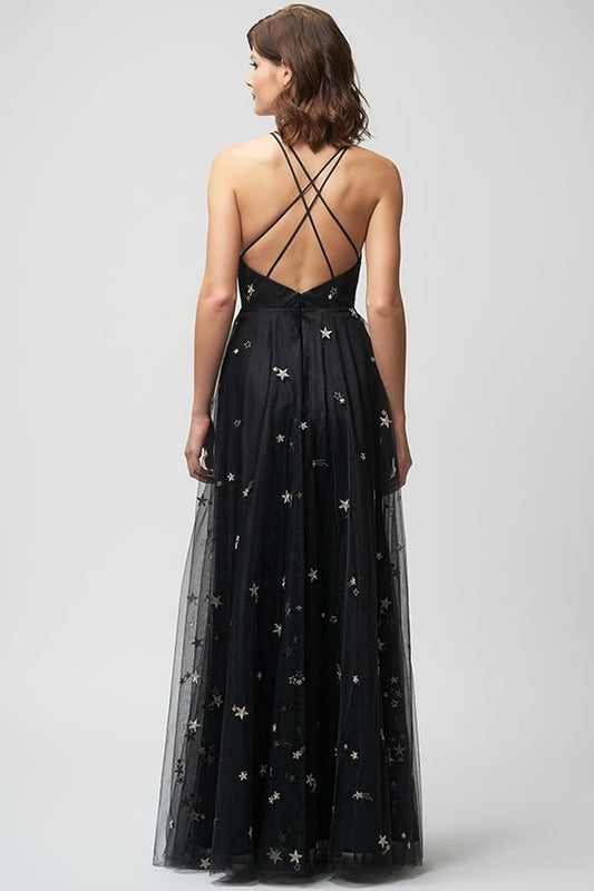 Black tulle gold star wedding dress. fashion prom gown cg1816