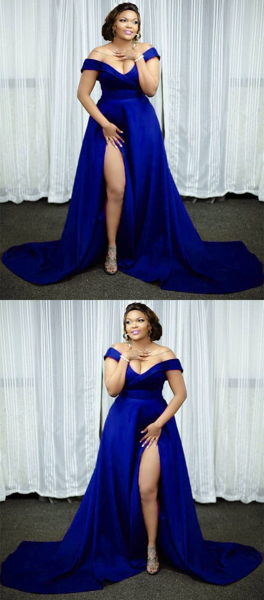 royal blue prom dress,off shoulder prom dress,charming prom gown with lace and split cg2126