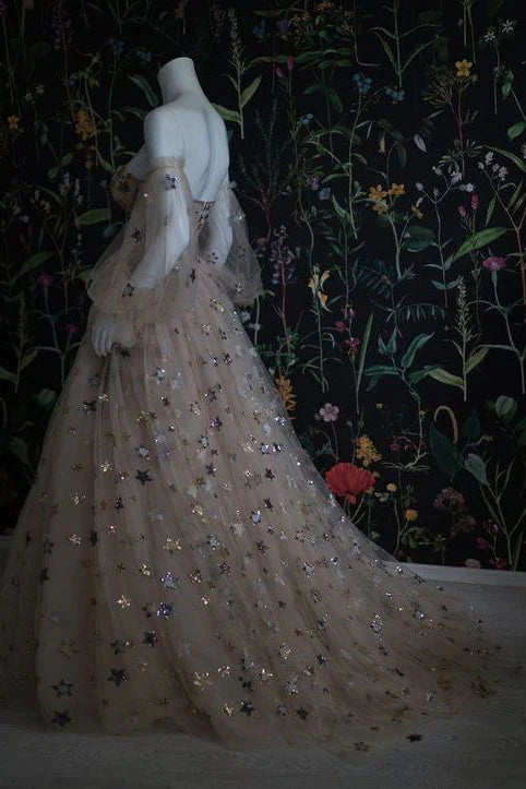 PM108,Chic Long Sweetheart Front Split Star Prom Dresses With Sleeves
