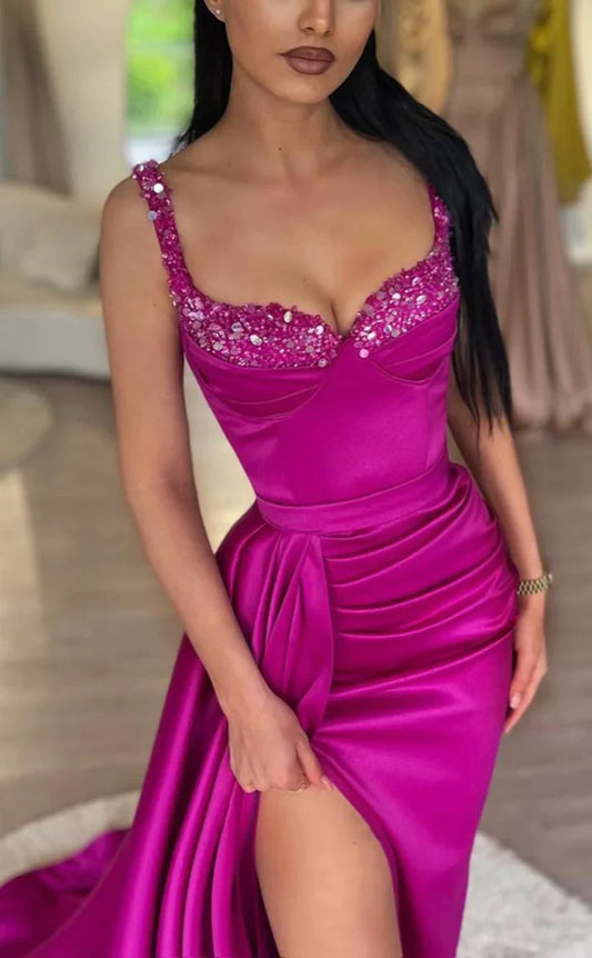 Fuchsia Mermaid Satin Long Prom Dresses