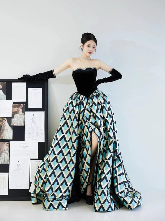 Classy Ball Gown Strapless Tulle Black Evening Dress Long Prom Dresses H2863