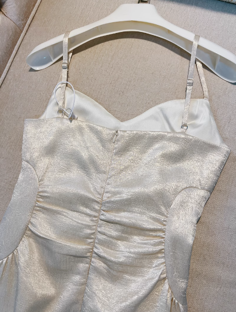 Elegant Sheath Spaghetti Straps Champagne Prom Dresses Formal Summer Wedding Guest Dresses Wedding Guest Outfit W0119