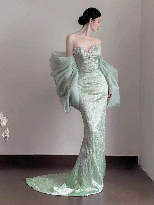 Sexy Mermaid Strapless Champagne Sleeveless Prom Dresses Party Dress Summer Birthday Outfits Birthday Dresses W0501