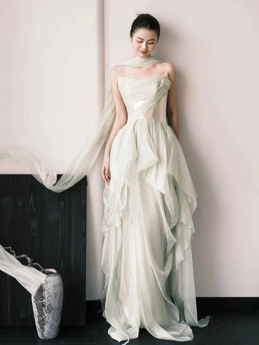 Sexy A line Strapless Light Mint Green Chiffon Sleeveless Prom Dresses Party Dress Summer Birthday Outfits Birthday Dresses W803
