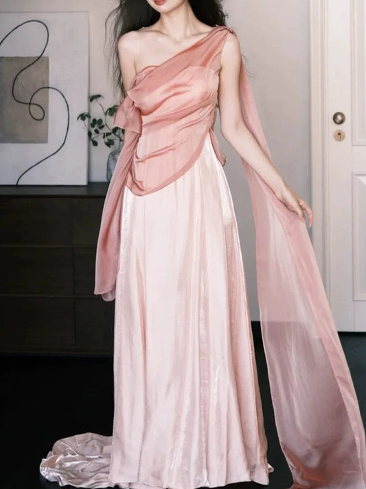 Sexy A line One Shoulder Pink Satin Sleeveless Prom Dresses Party Dress Summer Birthday Outfits Birthday Dresses W805