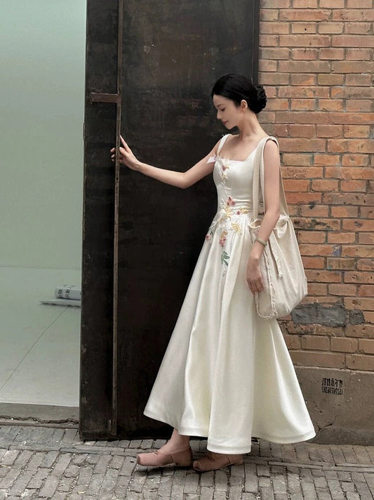 Sexy A line Square White Sleeveless Prom Dresses Party Dress Summer Birthday Outfits Birthday Dresses W806