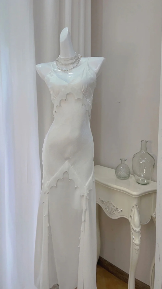 Royal Blue Sparkle Tulle Sequined Slit Long Prom Dress with Beads gh3001