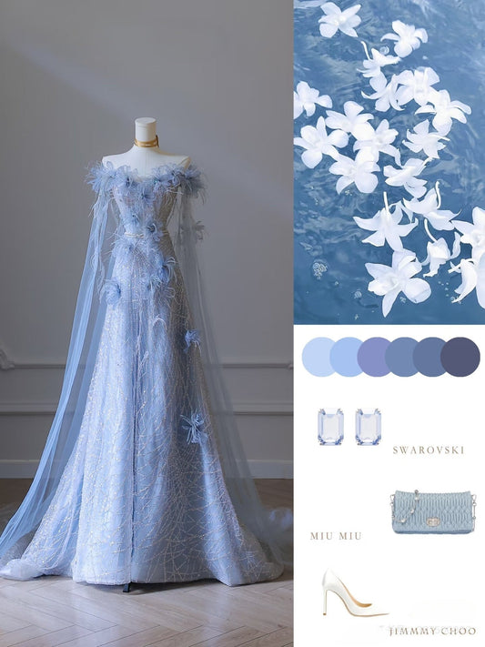 Classy Mermaid Off The Shoulder Light Sky Blue Evening Dress Prom Dresses SD2387
