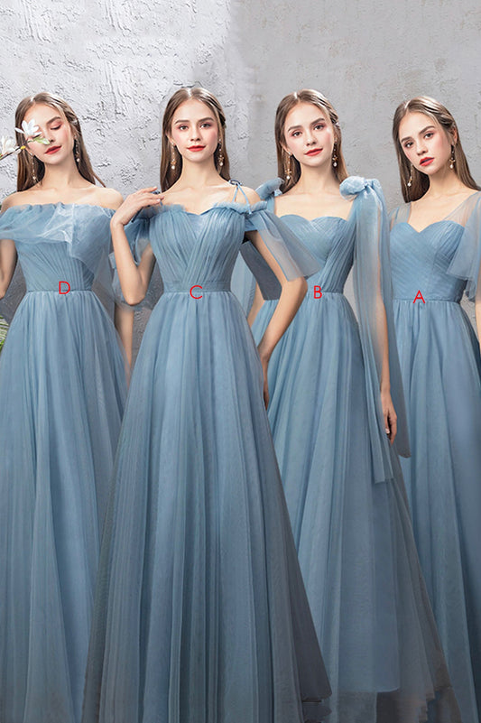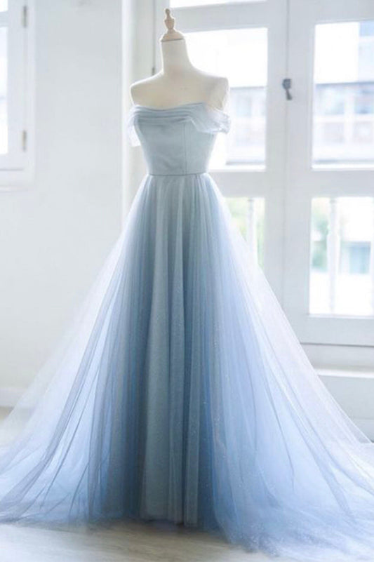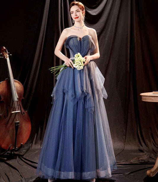 Blue tulle long A line prom dress blue evening dress 10551